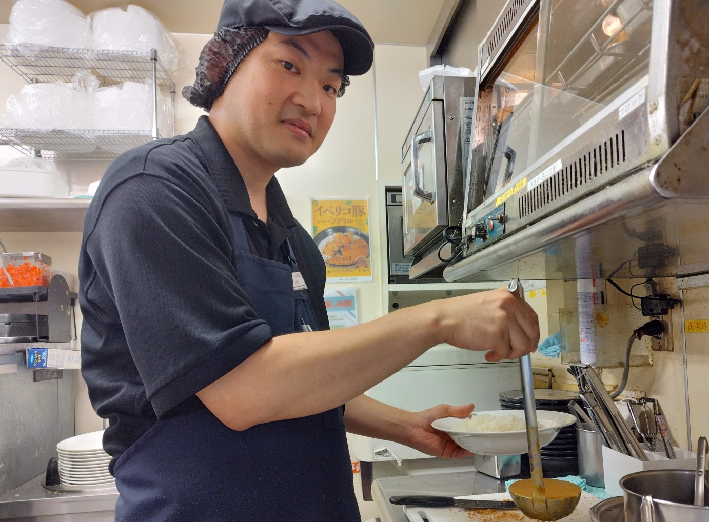 現在はカレーショップC&Cで勤務しています。出勤後はまずメールチェックや前日の売上確認からスタート。その後はキッチンでの調理や接客を中心に店舗運営業務に携わります。
